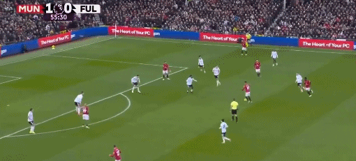 第56分鐘,卡塞米羅瀟灑直傳,庫尼亞心領神會,禁區內小角度爆射,打穿萊諾的十指關,曼聯擴大優勢,2-0!