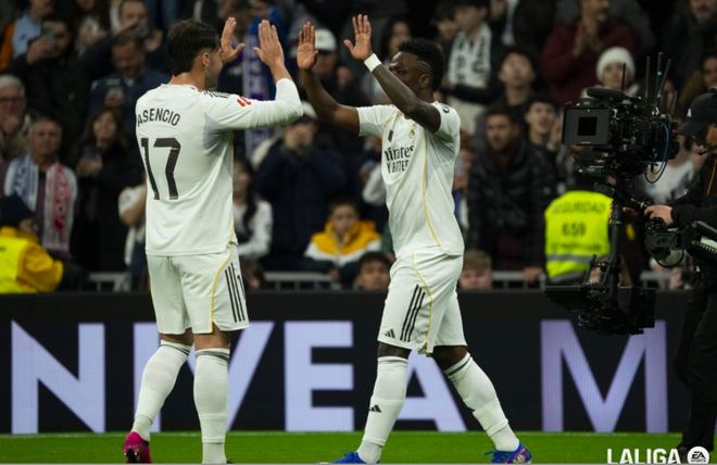 第15分钟,皇马打出快速反击,维尼修斯毫不犹豫选择单干,禁区内一对三,兜射远角破门。