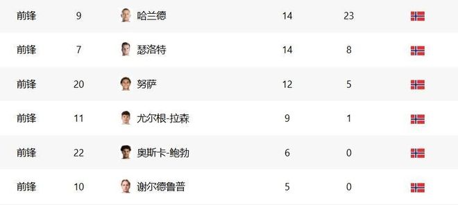 如今的挪威锋线堪称人才济济,形成了以哈兰德为首的多层次攻击体系。在2026年世预赛中,哈兰德仅用8场比赛就打入16球,当选欧洲区最佳射手,领先第二名多达8球。这位曼城前锋的国家队效率惊人,在46场比赛中攻入51球,成为史上第六位在不到50次出场就突破50球大关的球员。与哈兰德搭档的是效力于马德里竞技的锋霸瑟洛特。这位30岁的前锋状态正佳,最近连续三轮西甲破门得分,这是他在马竞生涯中首次实现连续三场联赛进球。瑟洛特在西甲早已证明自己,曾在效力比利亚雷亚尔期间单季贡献26球6助攻,成为西甲银靴。