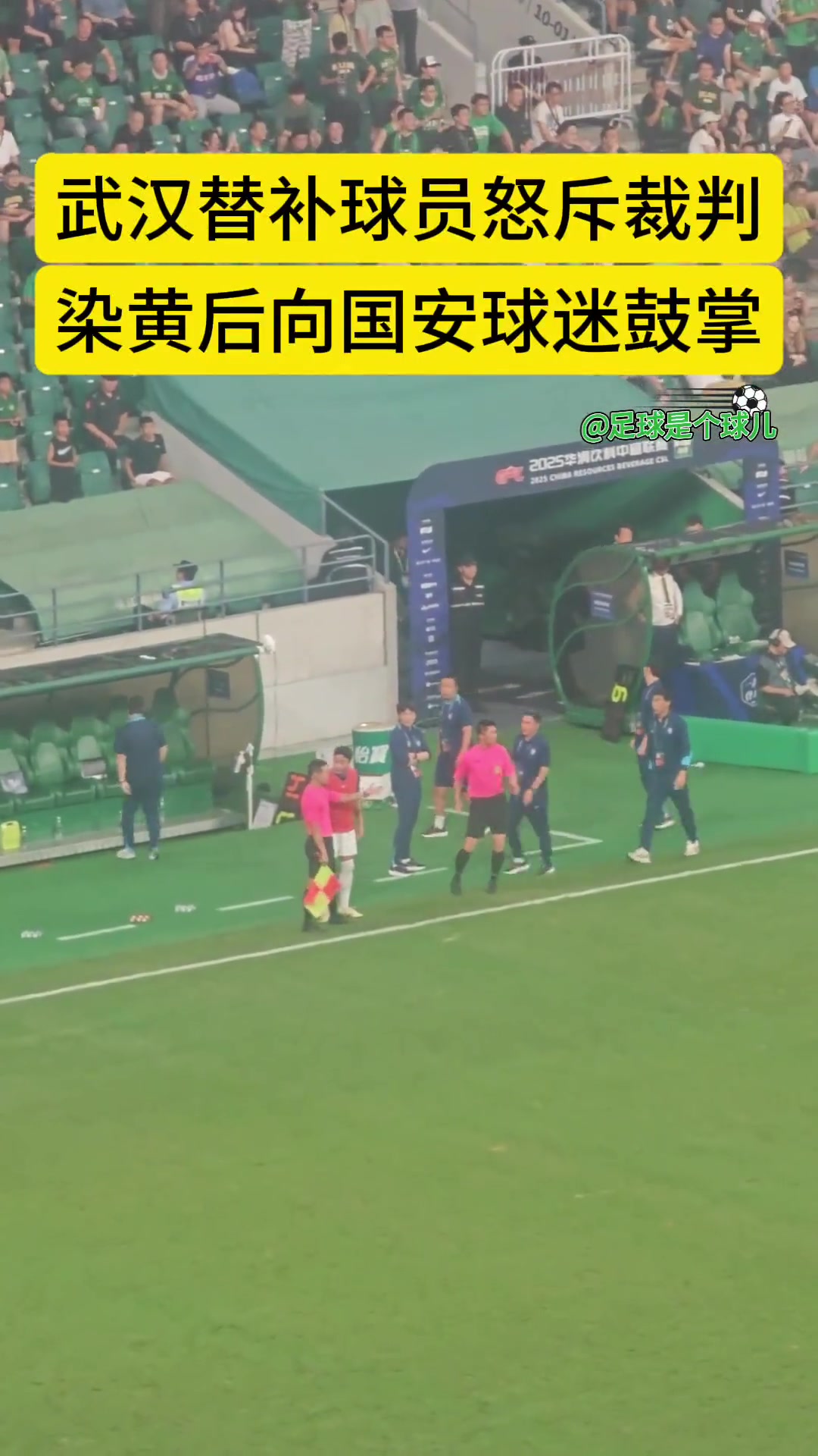 实拍武汉三镇替补球员朴志洙怒斥裁判染黄后朝国安球迷鼓掌