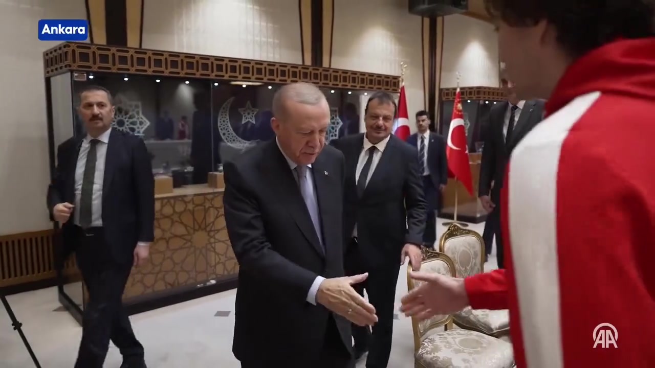 欧锦赛亚军土耳其总统埃尔多安接见土耳其男篮全体成员
