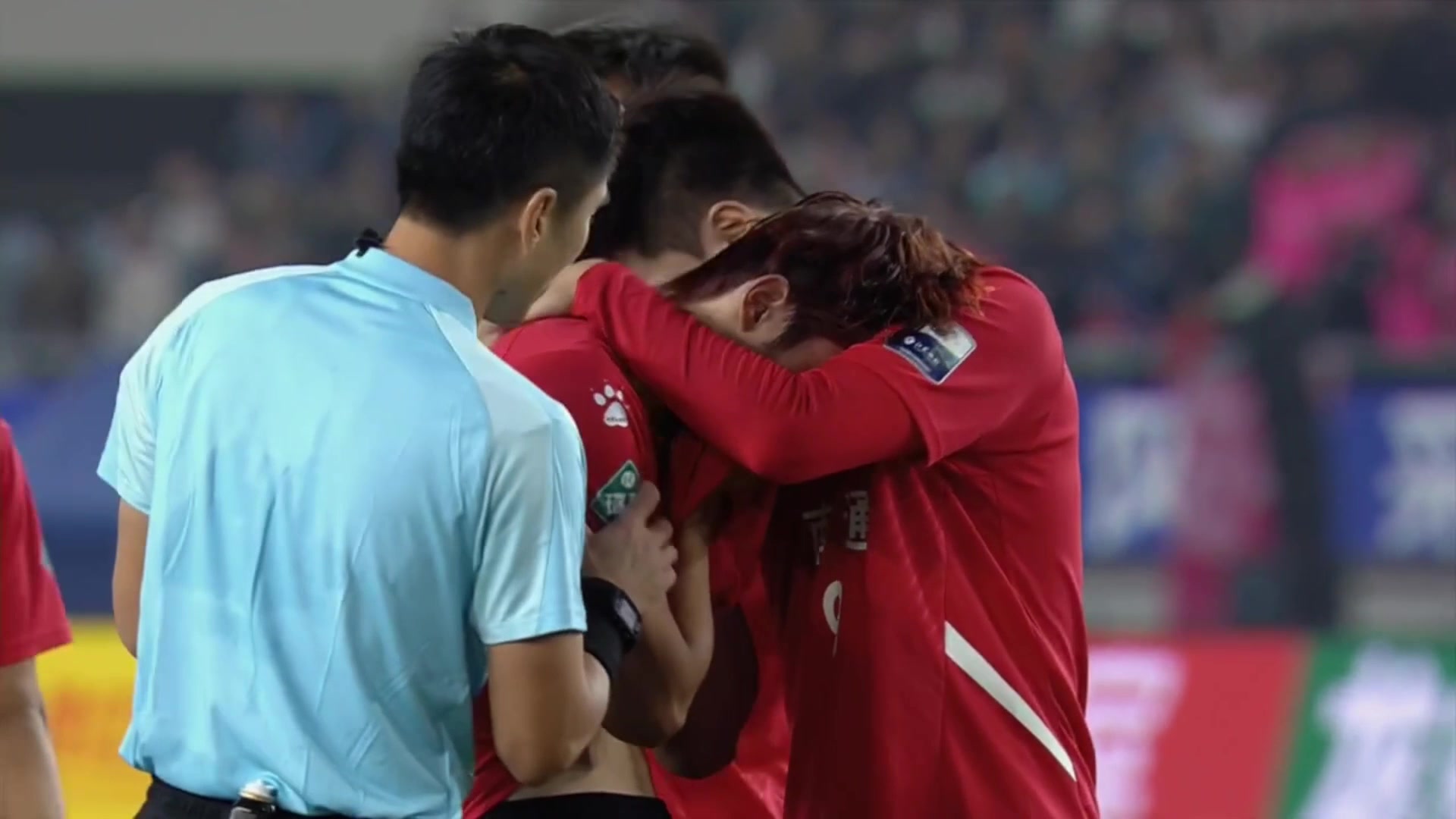 遗憾南通队球员李贤成失点丢冠后痛哭主裁马宁上前安慰
