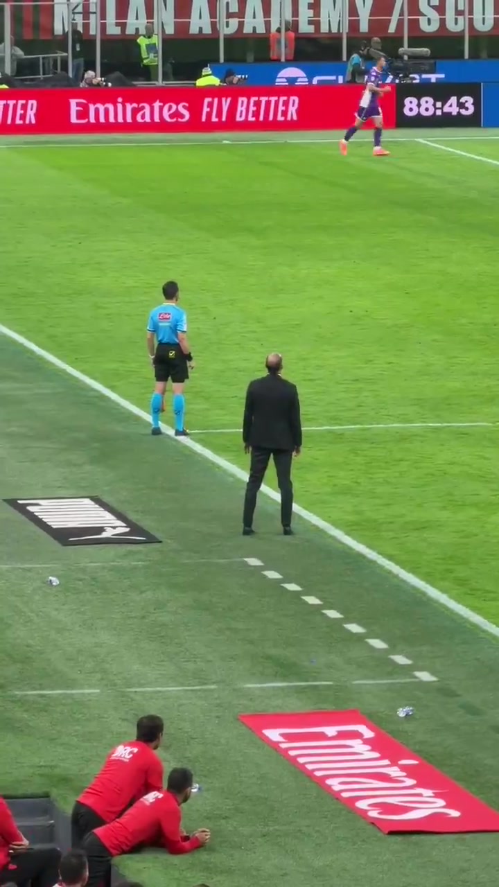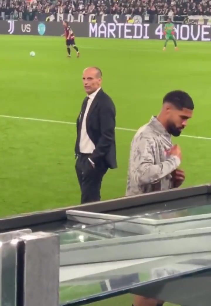 球迷实拍阿莱格里在场边呼叫球员登场
