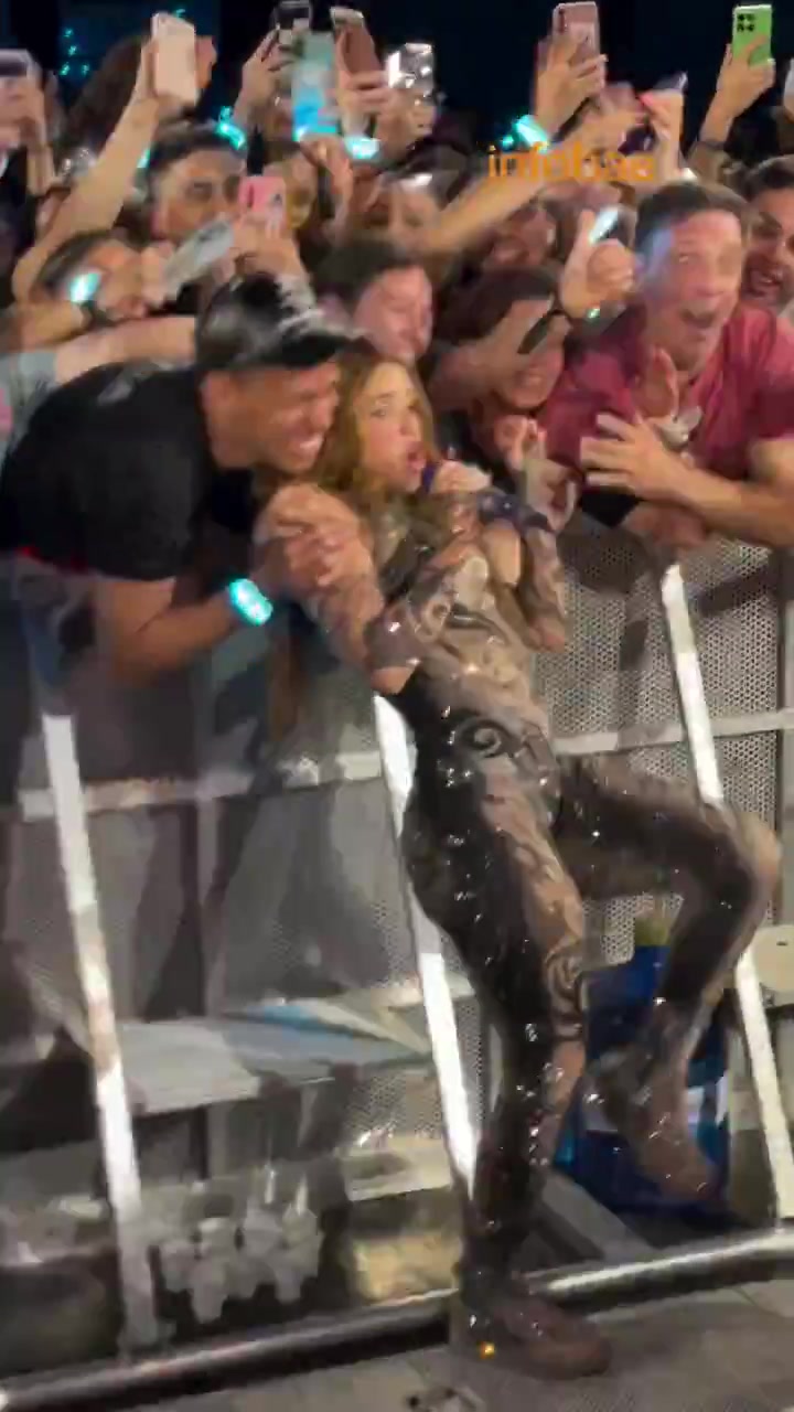 演唱会上夏奇拉被疯狂男粉丝拉住狂亲
