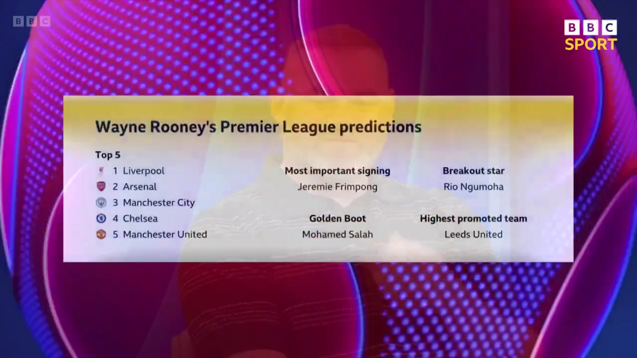 认可吗鲁尼预测英超新赛季前五排名曼联第5利物浦冠军