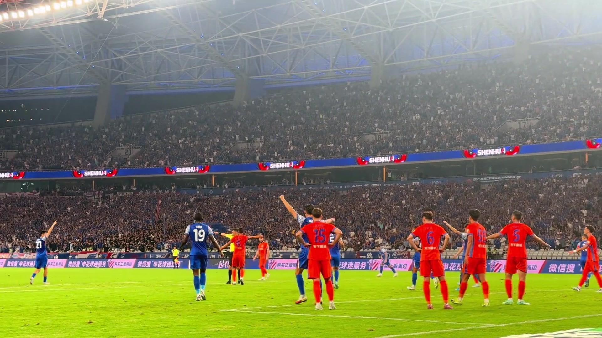 现场球迷视角申花的角球进球李可干扰王大雷是否构成犯规