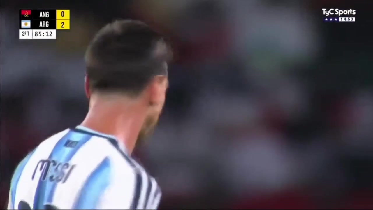 没能压住德保罗送精准传中球梅西后点不停球凌空射门打飞了
