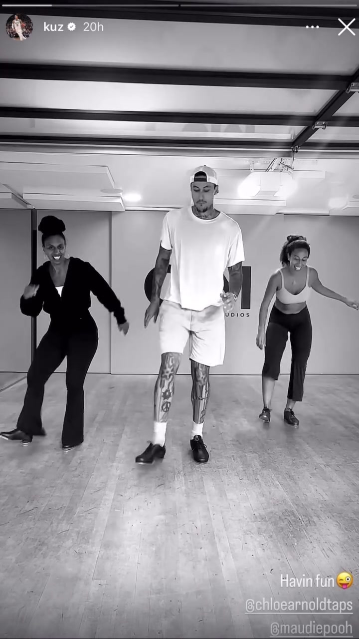 有眼有钱高富帅库兹马休赛期和两位女士练踢踏舞有说有笑