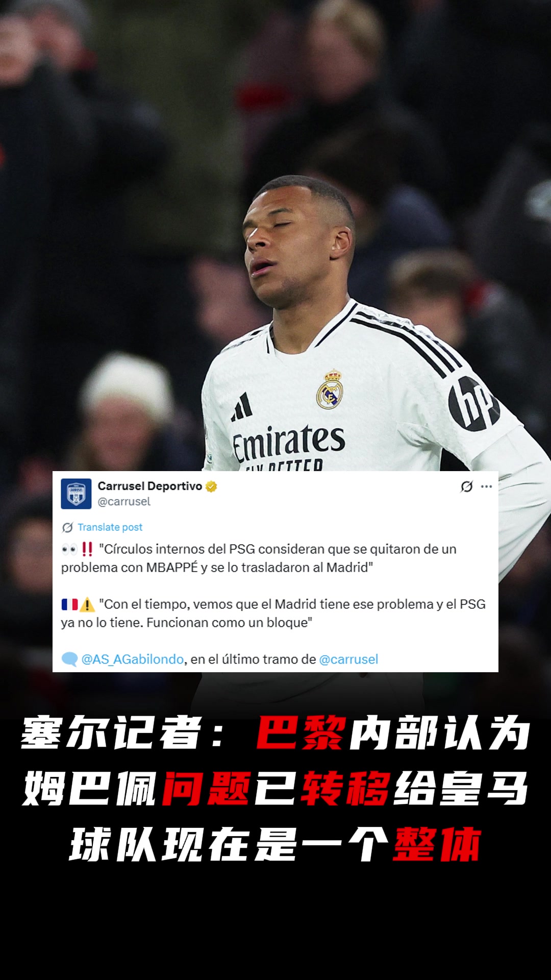 记者巴黎内部认为姆巴佩问题已转移给皇马球队现在是一个整体