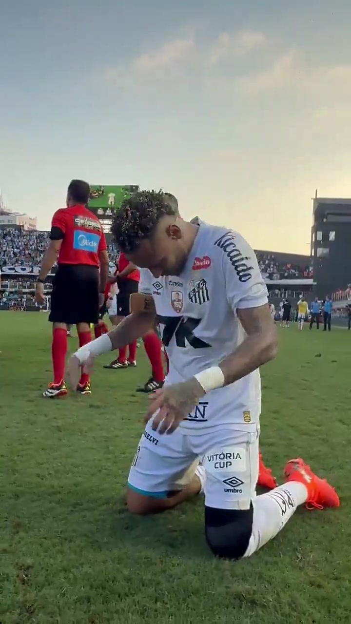 桑托斯保级成功内马尔赛后跪地庆祝